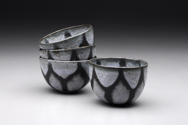 The goal of this assignment is to learn to create sets, trim feet, and use various glazing techniques including vinyl masking, over-glaze washes, and glaze layering. Students are asked to consider a variety of forms by sketching profiles and throwing several different bowl shapes. From those variations they chose one and make a matching set.