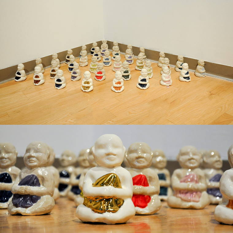 The Advanced Ceramics class builds on the foundation developed in beginning ceramics. Assignments are based on building methods or skills that allow students to begin developing content and a personal aesthetic. This piece utilizes the multiple to investigate China’s one child policy.