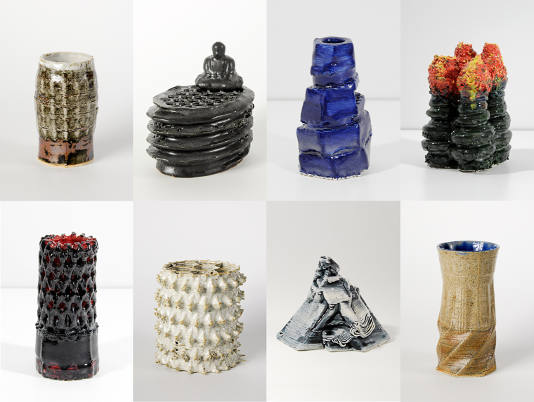 In this class students learn various computer aided design software. These pieces were modeled with Fusion 360, Tinker CAD, and Oculus Medium and then printed in various clays on a delta clay printer.